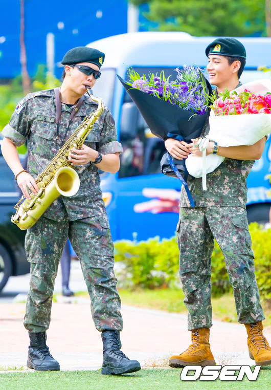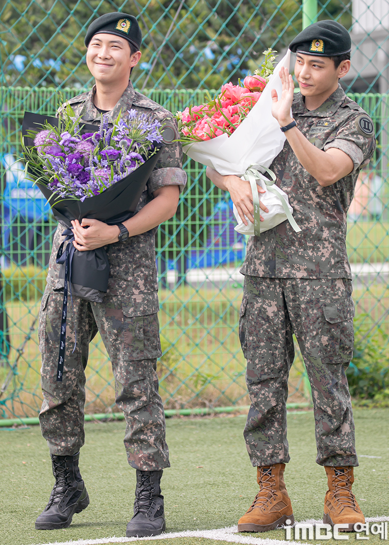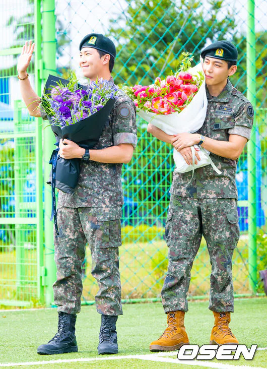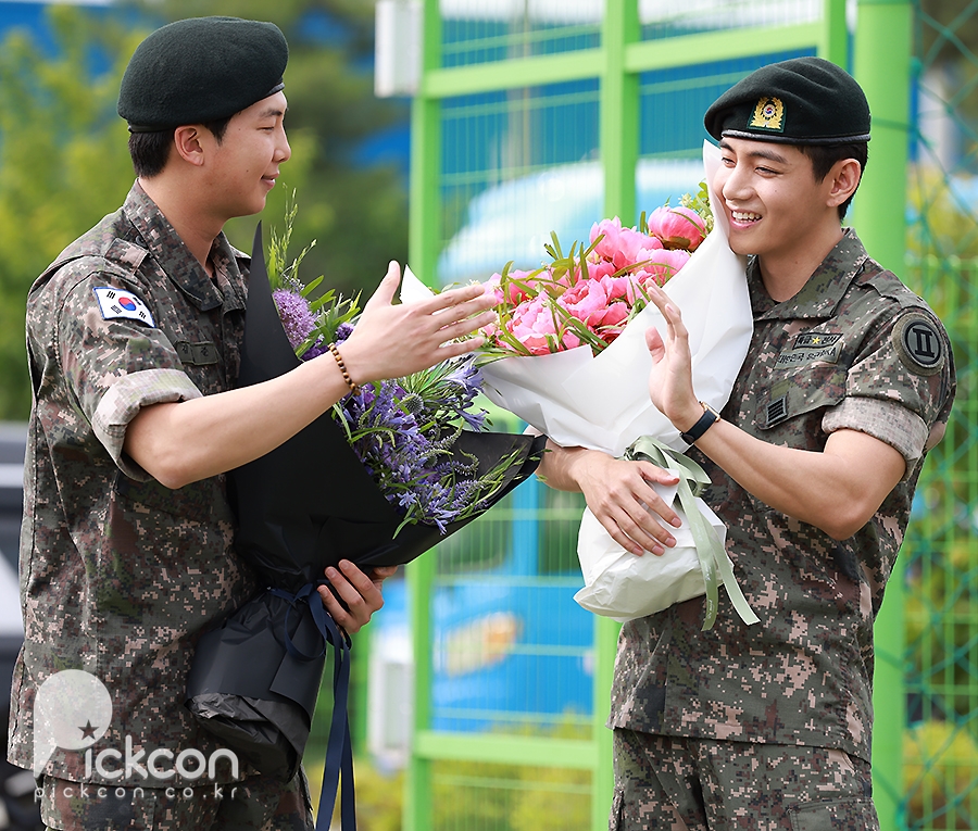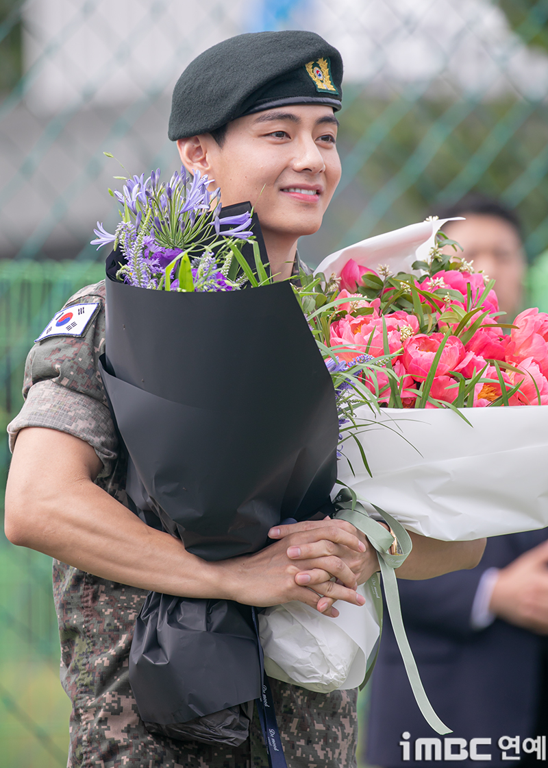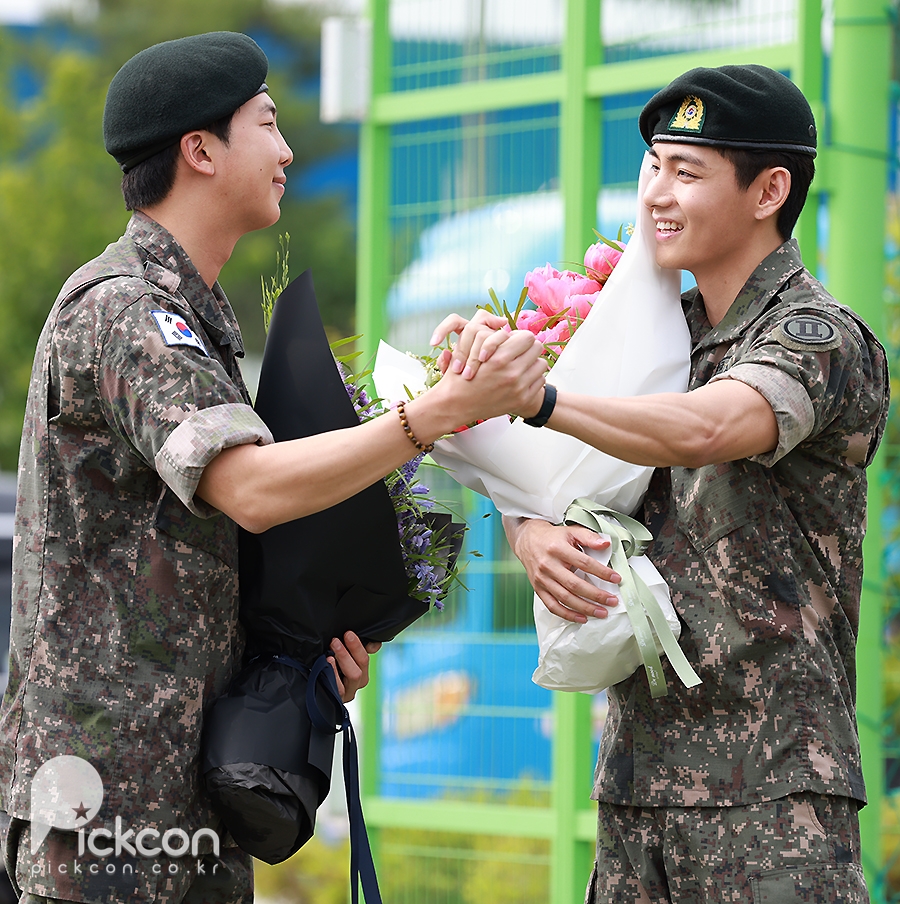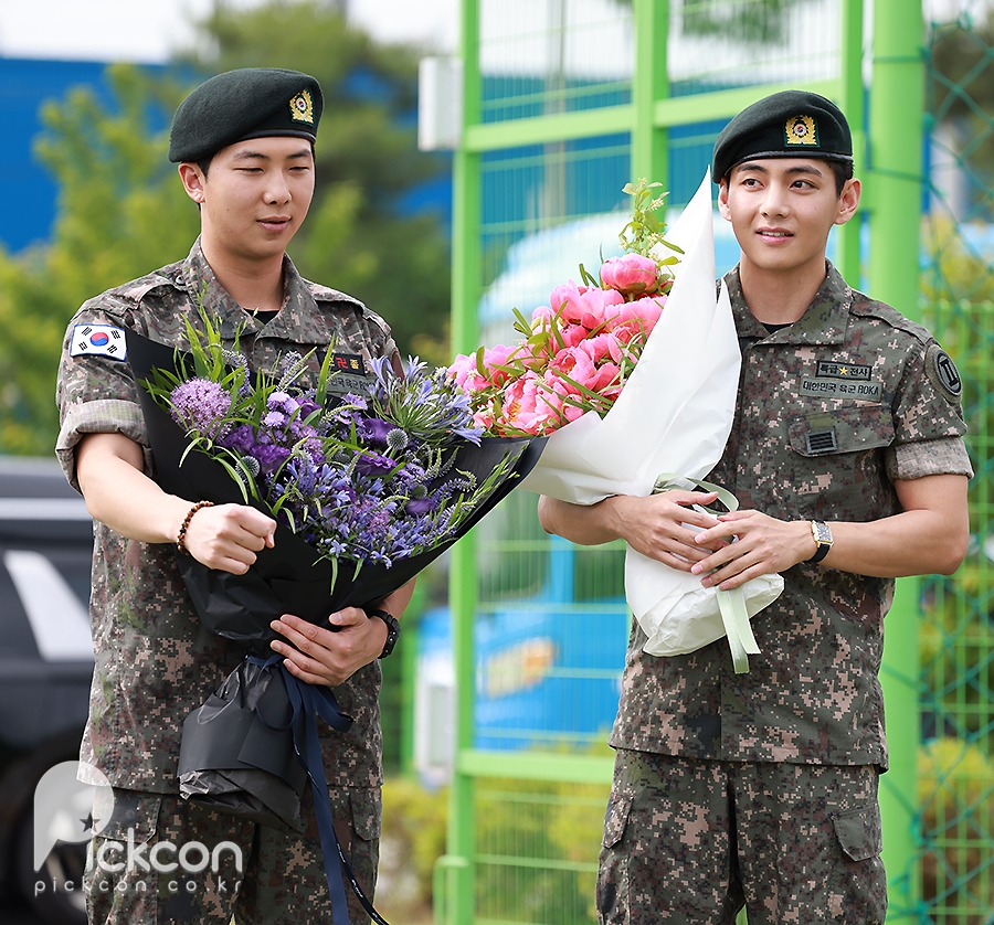 'Discharged' BTS RM and V, holding hands warmly while holding a bouquet of flowers [Photo]'Discharged' BTS RM and V, holding hands warmly while holding a bouquet of flowers [Photo]pickcon.co.kr