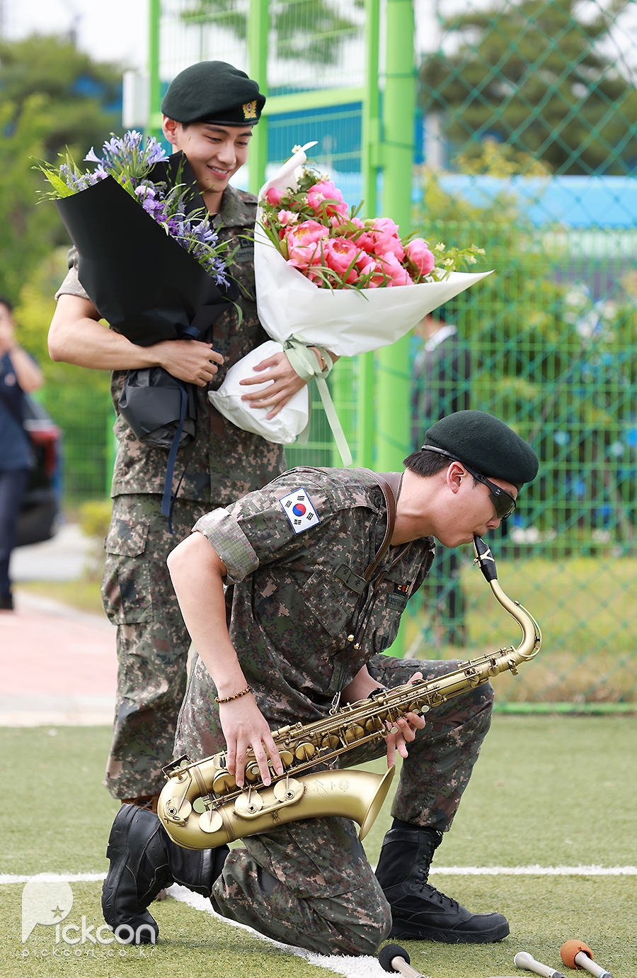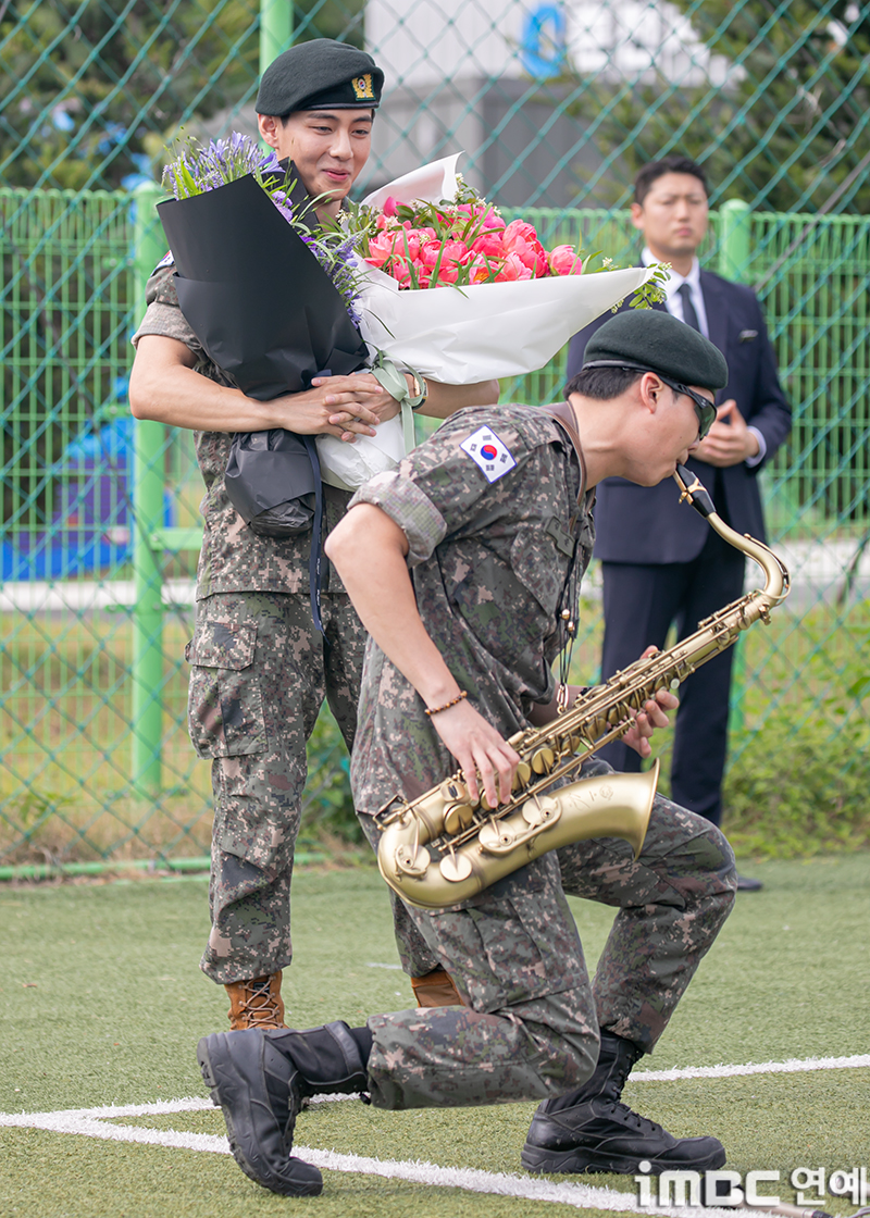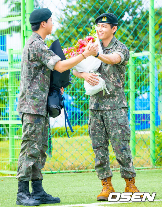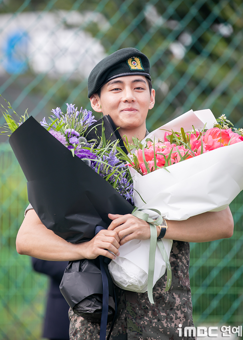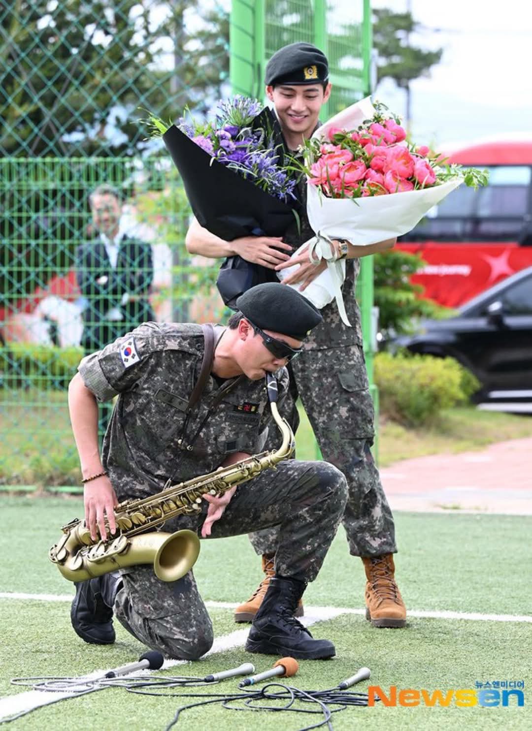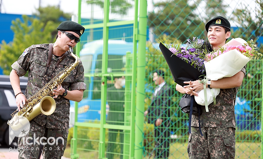 'Discharged' BTS RM and V, holding hands warmly while holding a bouquet of flowers [Photo]'Discharged' BTS RM and V, holding hands warmly while holding a bouquet of flowers [Photo]pickcon.co.kr
