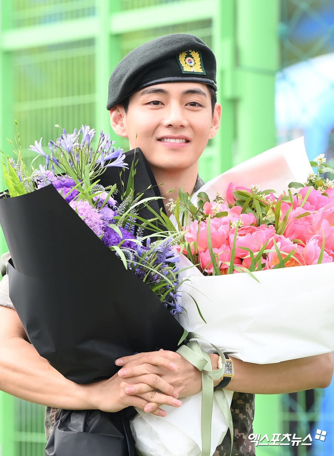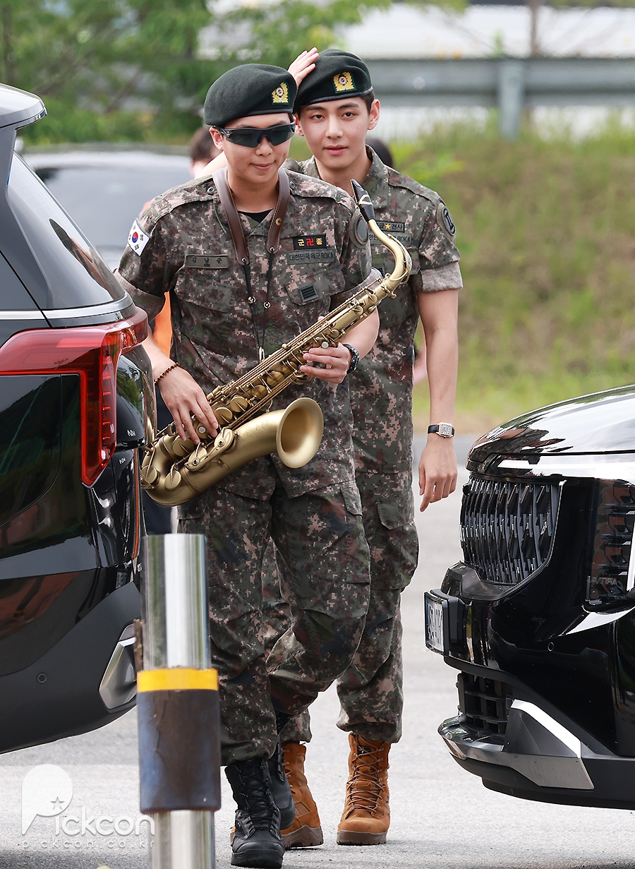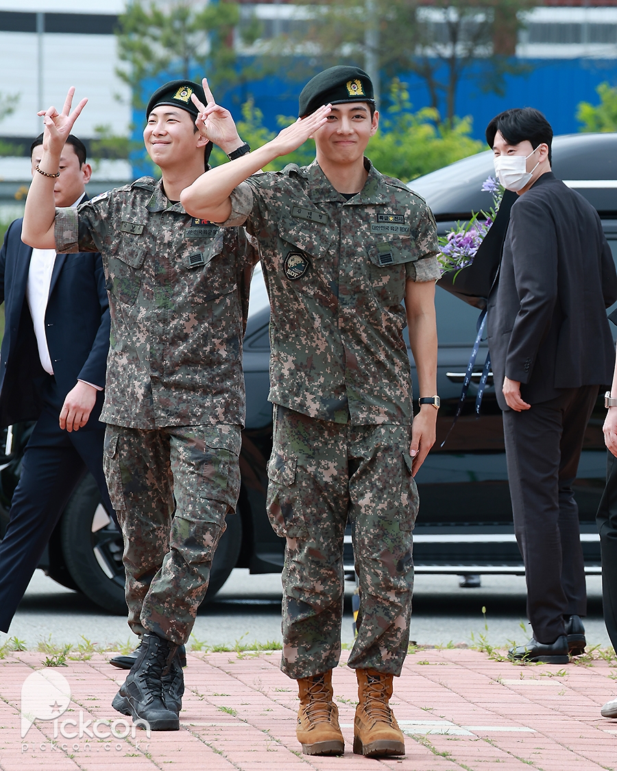 (엑스포츠뉴스 춘천, 고아라 기자) 10일 오전 그룹 방탄소년단(BTS) RM, 뷔가 육군 현역으로 군 복무를 마치고 만기 전역했다.방탄소년단 뷔가 포즈를 취하고 있다.RM과 뷔는 지난 2023년 12월 나란히