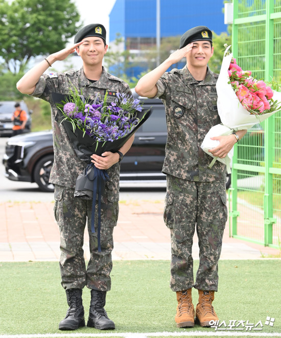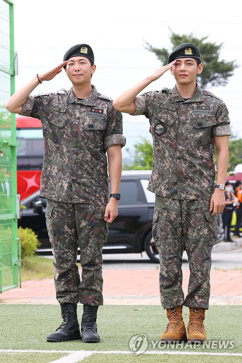 BTS RM and V, who have been discharged from the military, "Thank you for waiting... I want to repay you as soon as possible" | Yonhap News(Chuncheon = Yonhap News) Reporters Yang Ji-woong and Kang Tae-hyun = BTS members RM (real name Kim Nam-joon, 31) and V (real name Kim Tae-hyung, 30) have completed their active military service...www.yna.co.krBTS RM and V: "I will stop returning to the military and return to the stage soon" (Comprehensive) | Yonhap News(Chuncheon/Seoul=Yonhap News) Reporters Yang Ji-woong, Kang Tae-hyeon, and Lee Tae-su = BTS's RM (real name Kim Nam-joon, 31) and V (real name Kim Tae-hyung, 30) are serving in the military...www.yna.co.kr