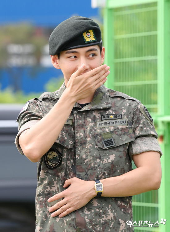 BTS 뷔 '수줍은 전역 신고'[엑's HD포토]