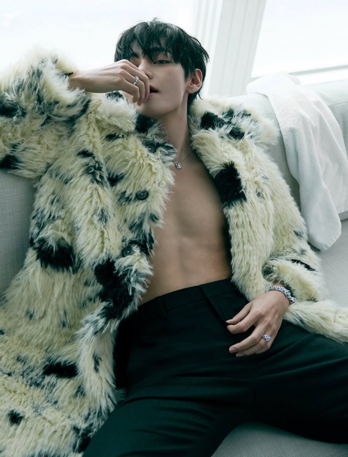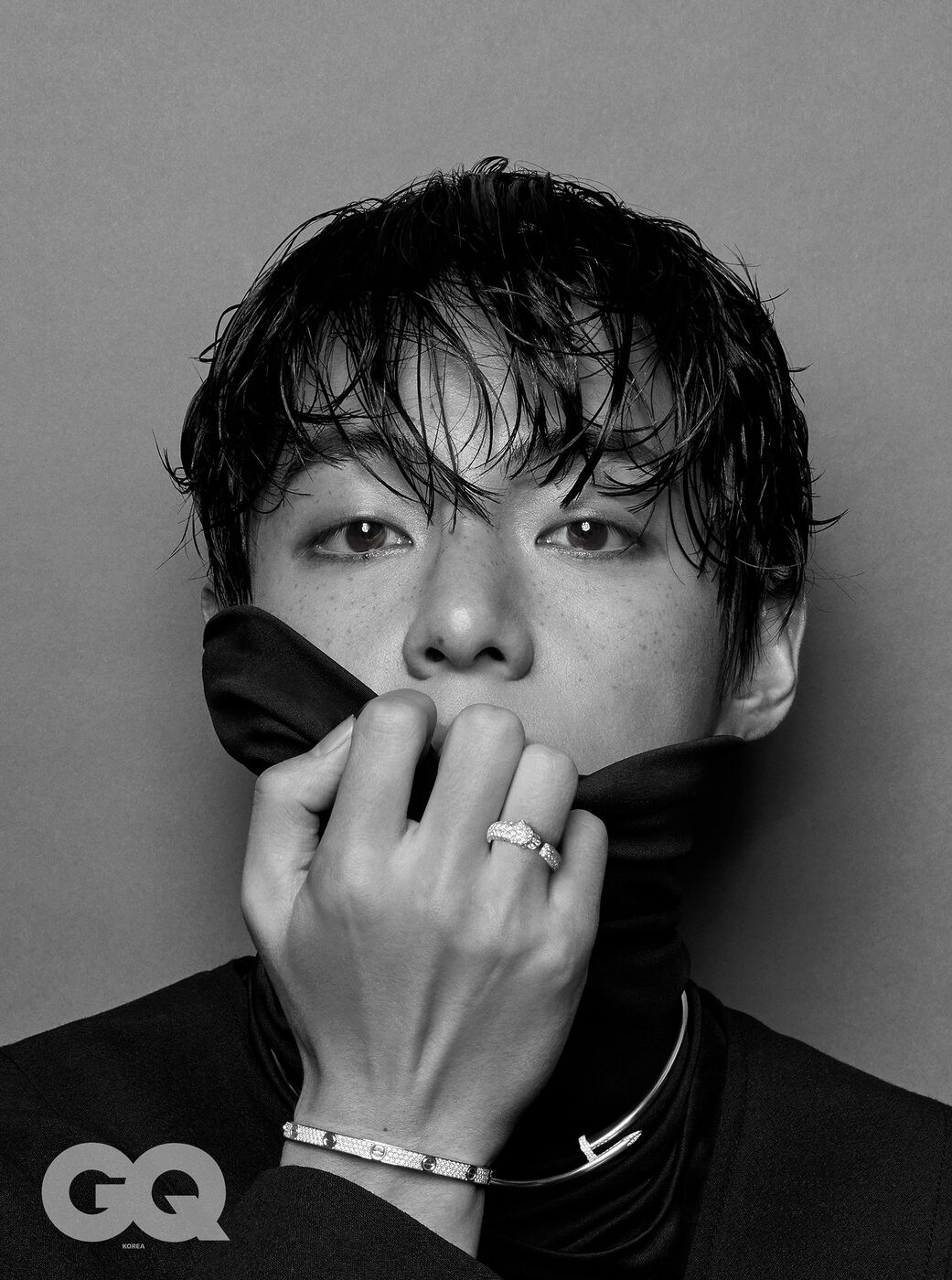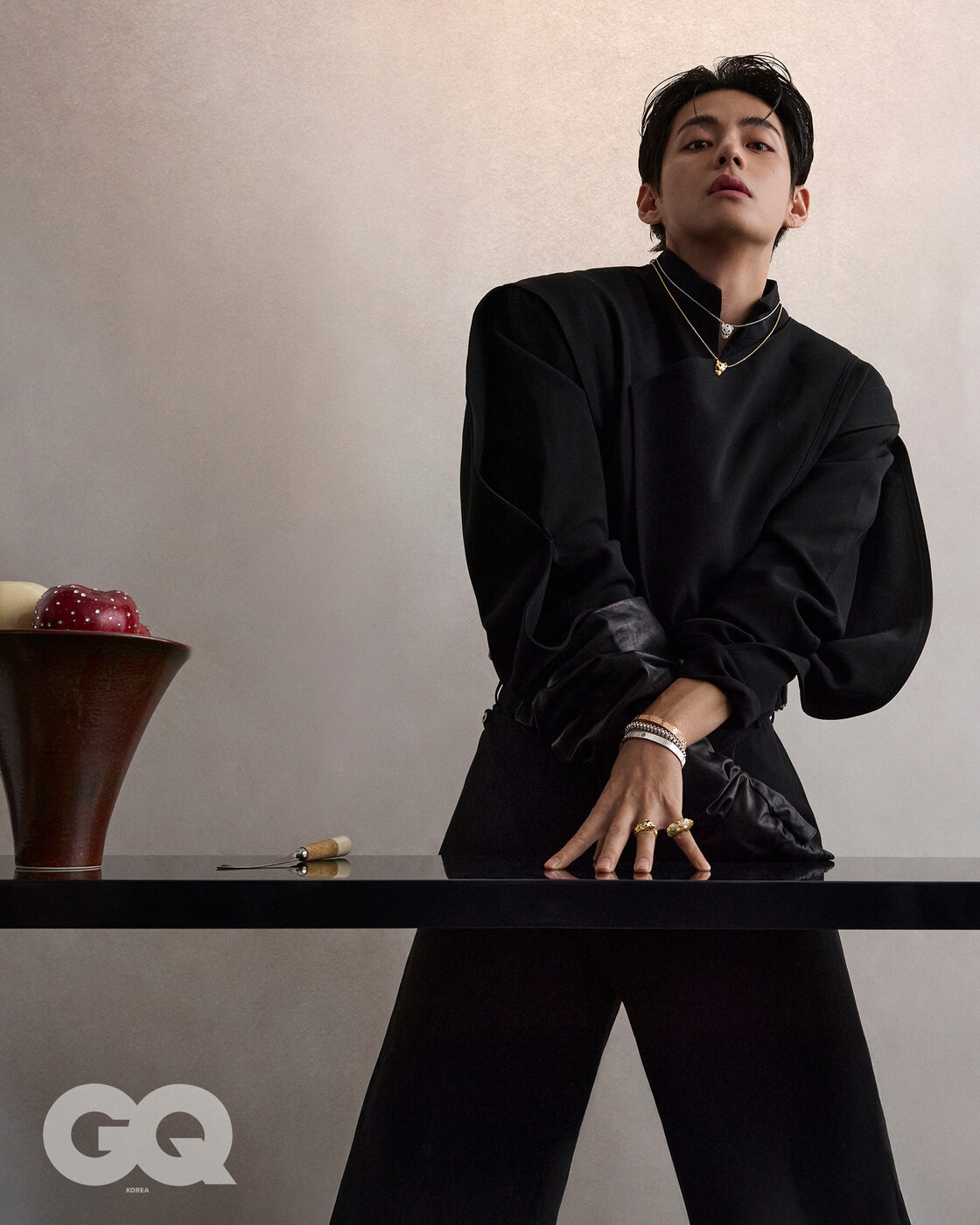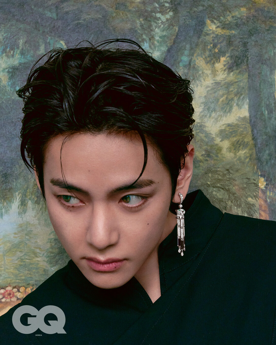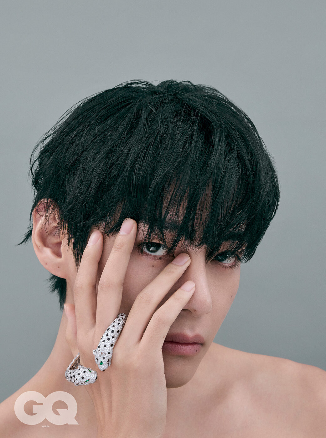반짝여 보석같던, 투명해 빛나던 그날의 V.<지큐> 2월호의 주인공 뷔의 화보 미리보기. 까르띠에 주얼리 컬렉션 사이로 유유히 스며든 찰나의 순간들. 뷔의 화보는 2월호, 그리고 1월 15일 & 19일 <